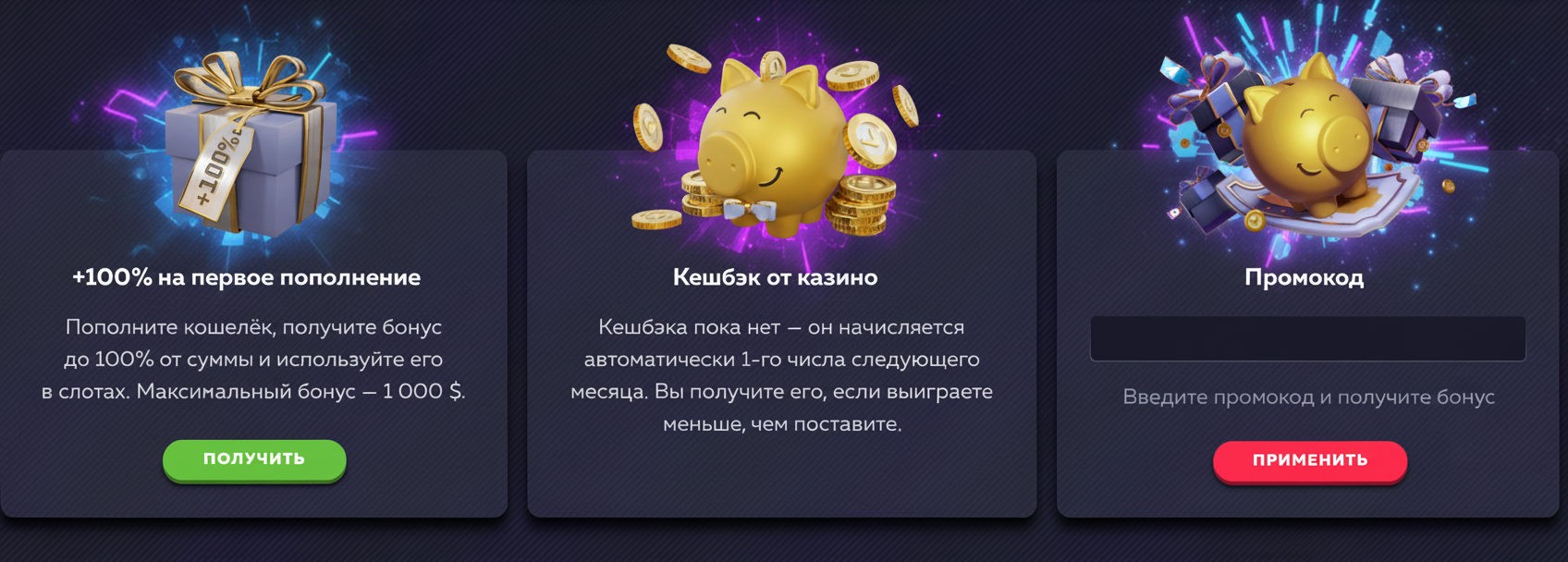 Верифицированные пользователи получают промо в подарок ко дню рождения в знак благодарности за лояльность. Игроки получают купоны по мере достижения новых статусов в программе лояльности.